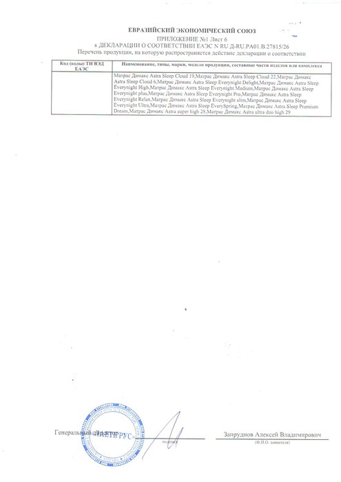 Сертификаты на аксессуары для сна из магазина Матрас-Барабас