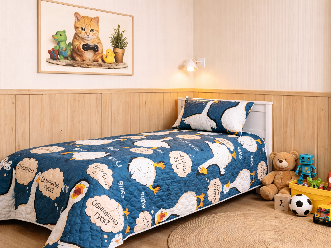 Покрывало «Гусь га-га» создаёт атмосферу тепла, уюта и хорошего настроения.