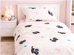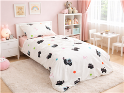 Комплект «Кошки в Шапках» создан для детей, которые любят милых животных, яркие детали и уютную красоту. Очаровательные чёрные котики в забавных шапочках на светлом фоне смотрятся стильно, весело и очень трогательно. Такой комплект мгновенно оживляет детскую комнату и делает кровать любимым местом отдыха.