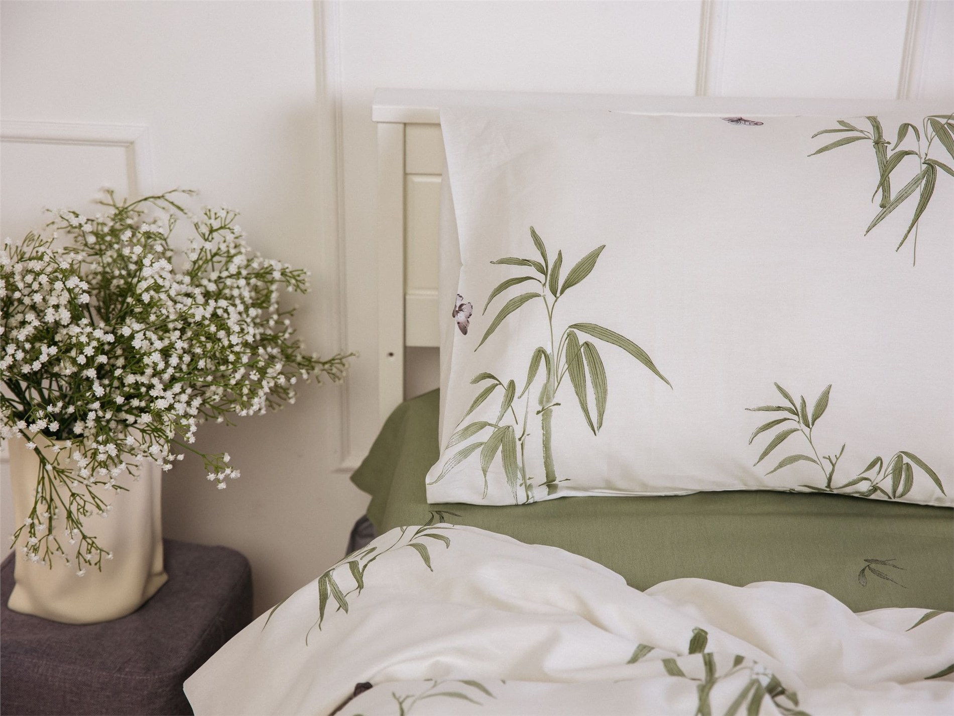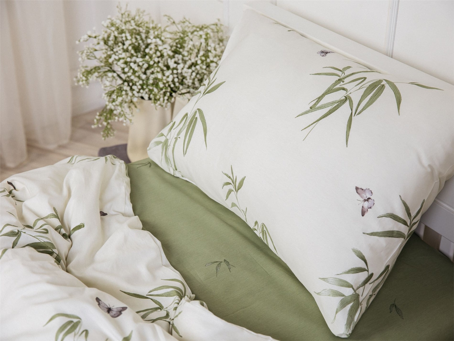 Гармония природы и нежности в вашем доме. Лёгкий шелковистый блеск, дышащий хлопок и утончённый принт с бамбуком и бабочками создают атмосферу спокойствия и свежести.