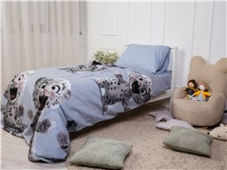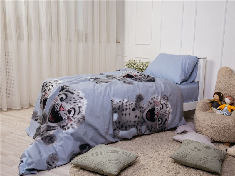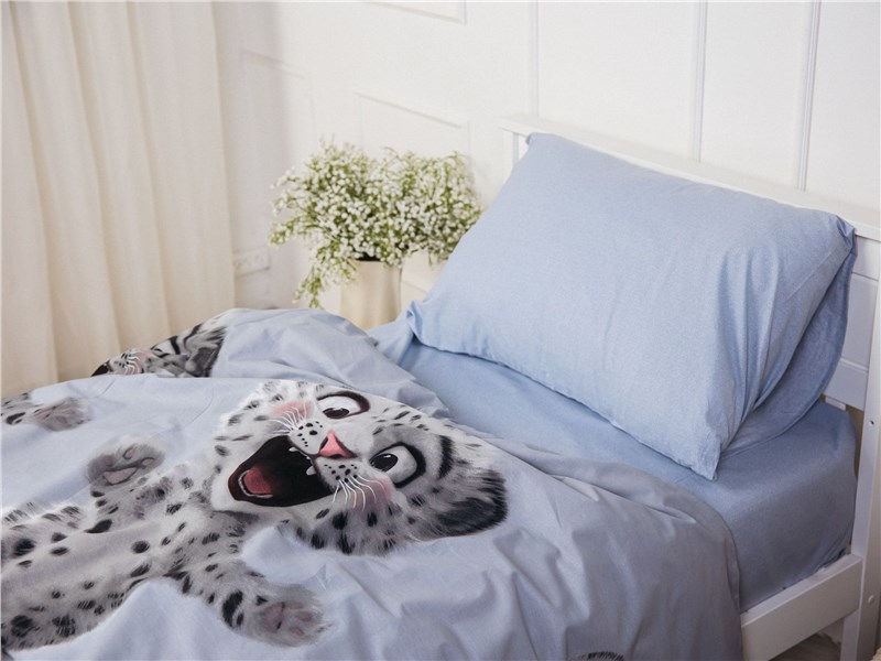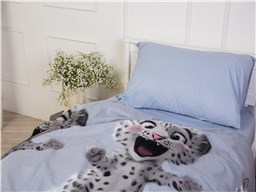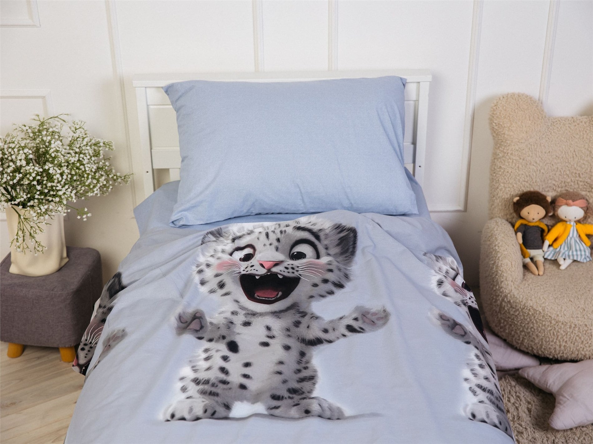 Нежный и весёлый комплект из поплина для детей, которые любят уют и милых зверят. “Snowy Smile” — это мягкость, улыбки и самые добрые сны под охраной забавного снежного леопарда.