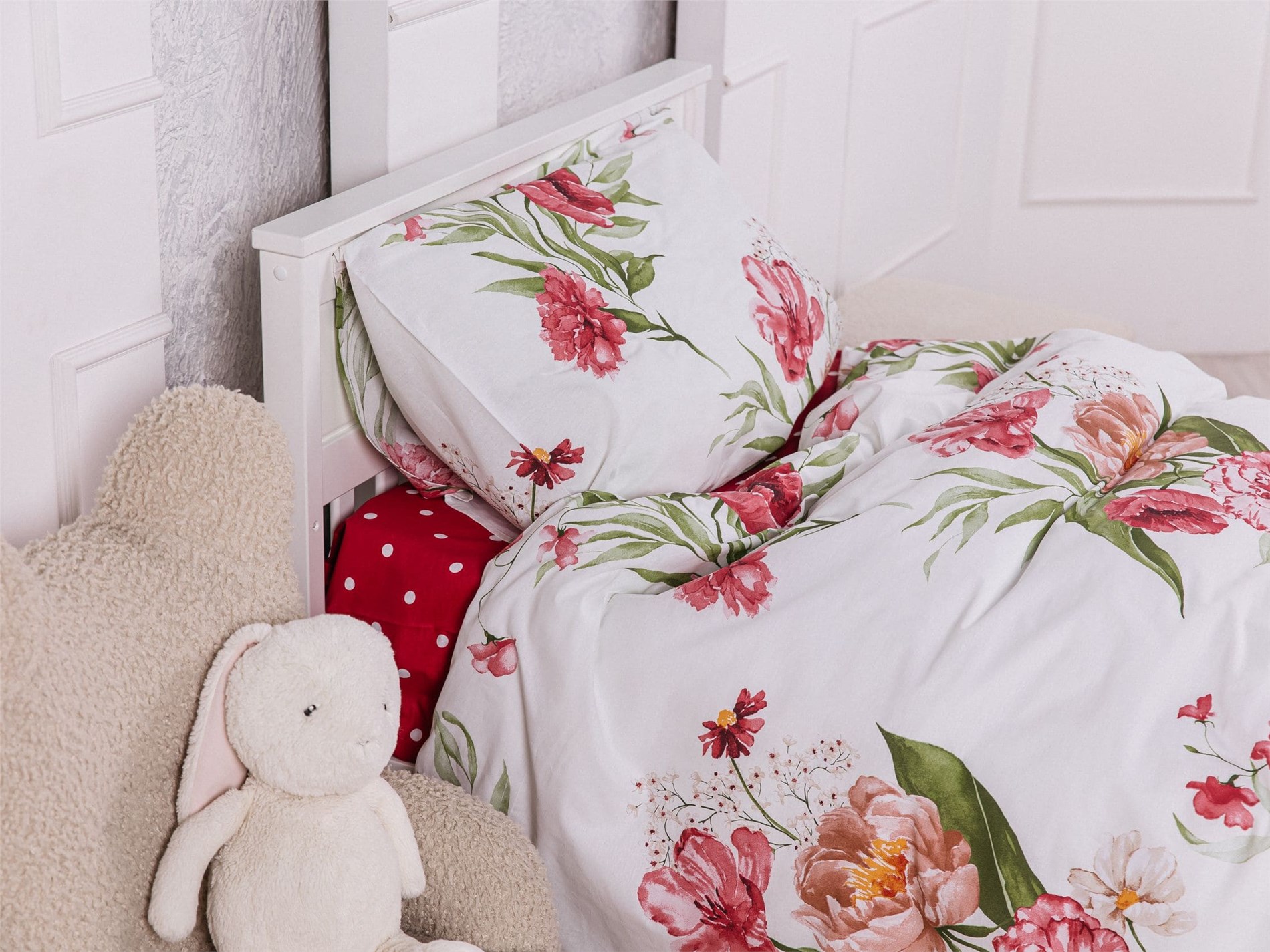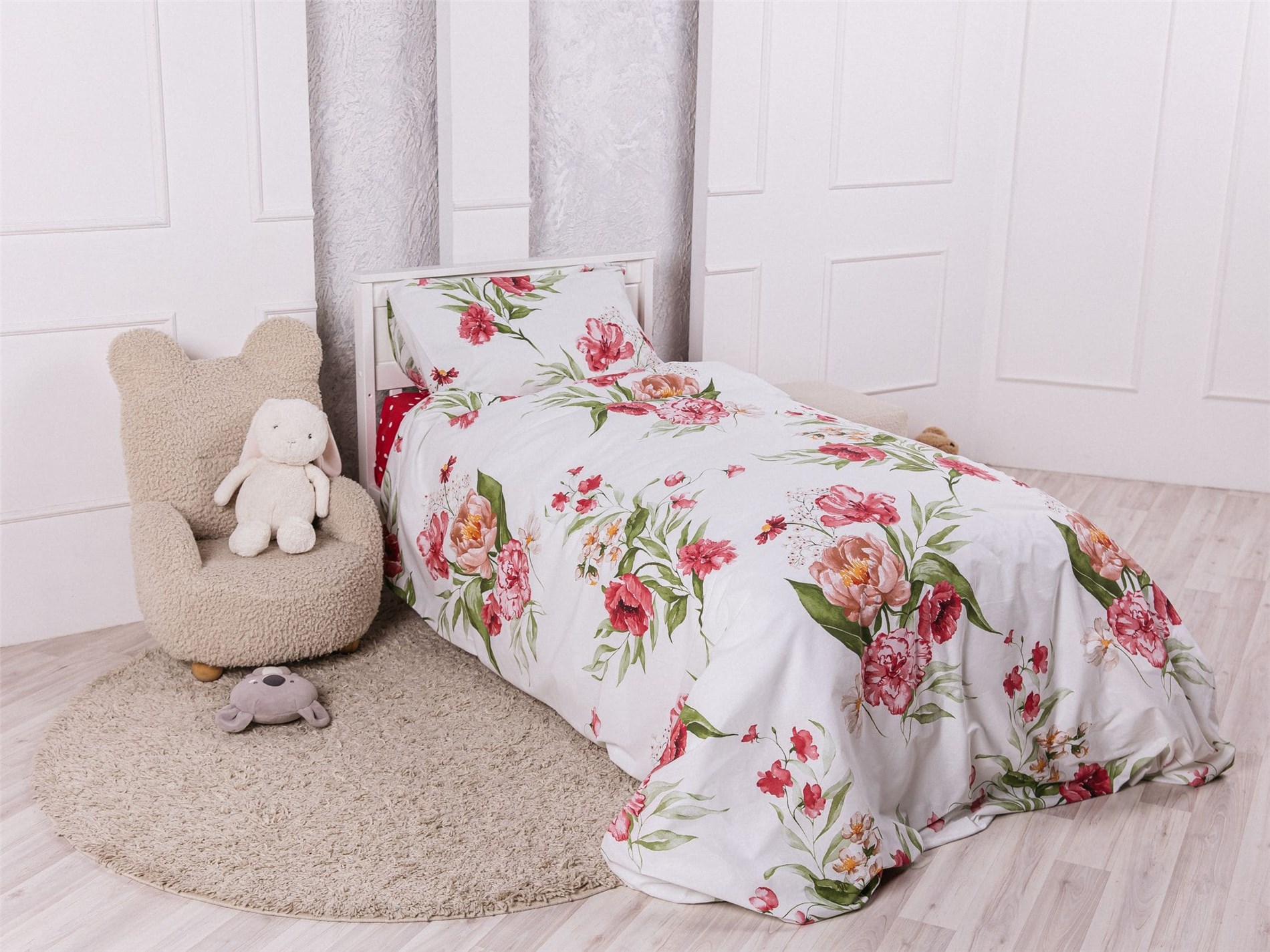 Погрузитесь в атмосферу цветущего сада вместе с комплектом постельного белья Bloomy Morning. Яркие пионы, маки, астры и бутоны на белоснежном фоне создают невероятно нежную, свежую и при этом живую композицию — словно утро в поле, наполненном ароматами и пением птиц.